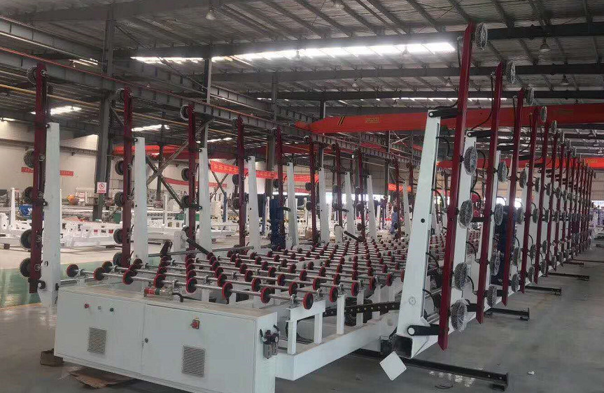 Il est principalement employé pour le chargement en verre automatique. Après avoir mis le verre dans la position indiquée et avoir donné le signal du chargement, le grand bras indique environ 95 degrés par le mécanisme de renversement, et les débuts entiers de machine pour avancer. Quand le dispositif d'induction sur l'arme de petit calibre touche le verre, la machine entière cesse de marcher et le verre est sucé par la tasse d'aspiration par le système de vide sur le verre, ascenseurs de levage de moteur d'arme de petit calibre le verre vers le haut et vers l'arrière environ 80 millimètres. Le moteur de marche retraite et le grand bras tombe vers le bas. Quand le bras de terril est en place, la tasse d'aspiration sous le verre commence à souffler. Quand l'arme de petit calibre tombe vers le bas, le verre tombe sur la roue de convoyeur. En conclusion, le verre est transporté à la table de coupe par la roue de convoyeur.