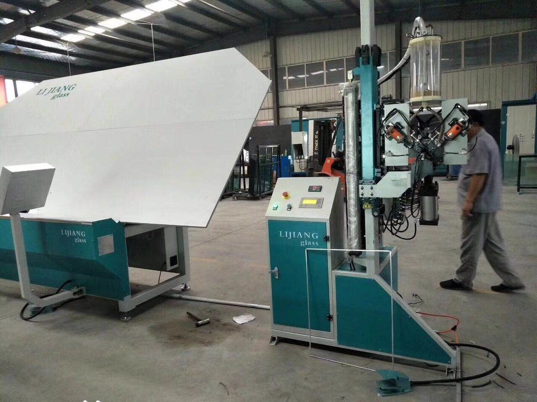 Pour le robot automatique de cachetage, la tête mécanique est devant la machine, il peut réaliser la vraie connexion avec la chaîne de production de double vitrage en produisant le verre d'étape.