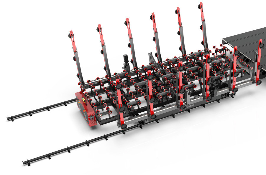 Il est principalement employé pour le chargement en verre automatique. Après avoir mis le verre dans la position indiquée et avoir donné le signal du chargement, le grand bras tourne environ 95 degrés par le mécanisme de renversement, et la machine entière commence à avancer. Quand le dispositif d'induction sur le petit