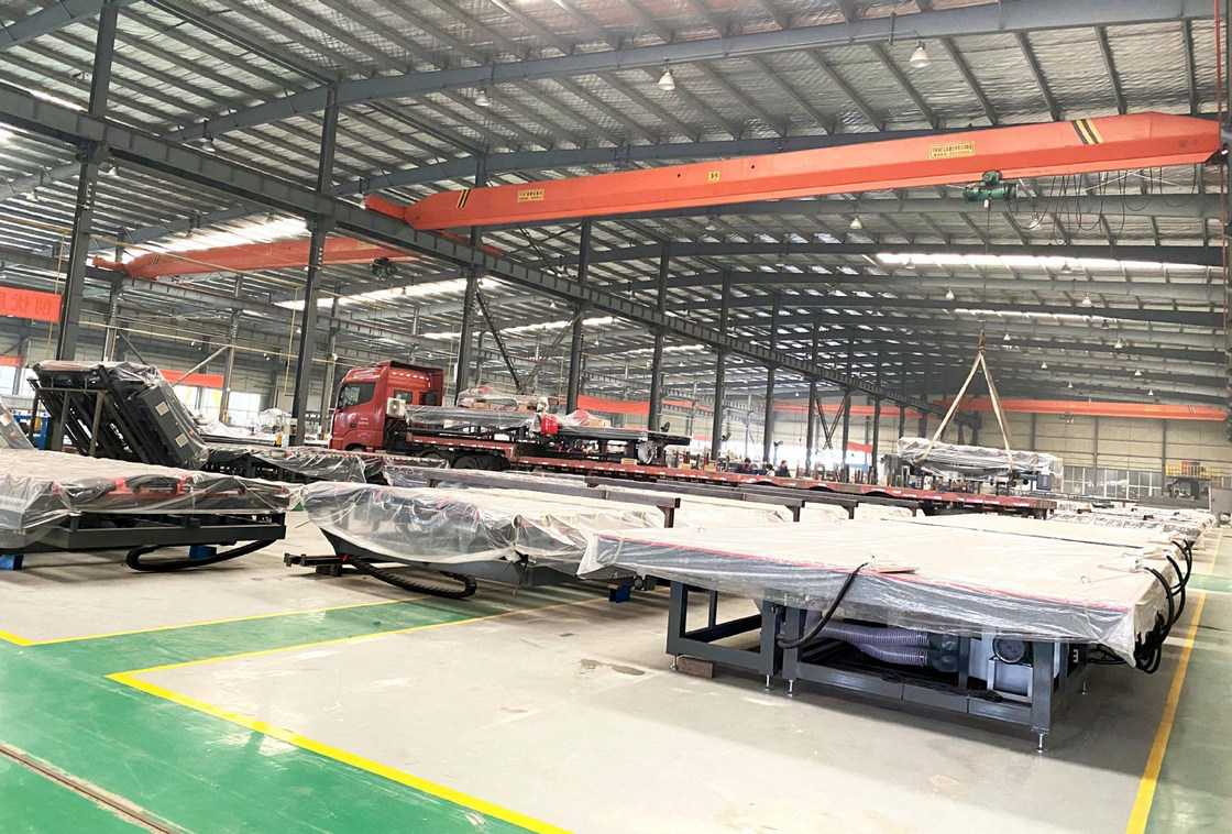 La ligne à grande vitesse automatique intelligente de taille du verre de commande numérique par ordinateur de LJSCLM est prête pour travailler dans l'atelier de notre client